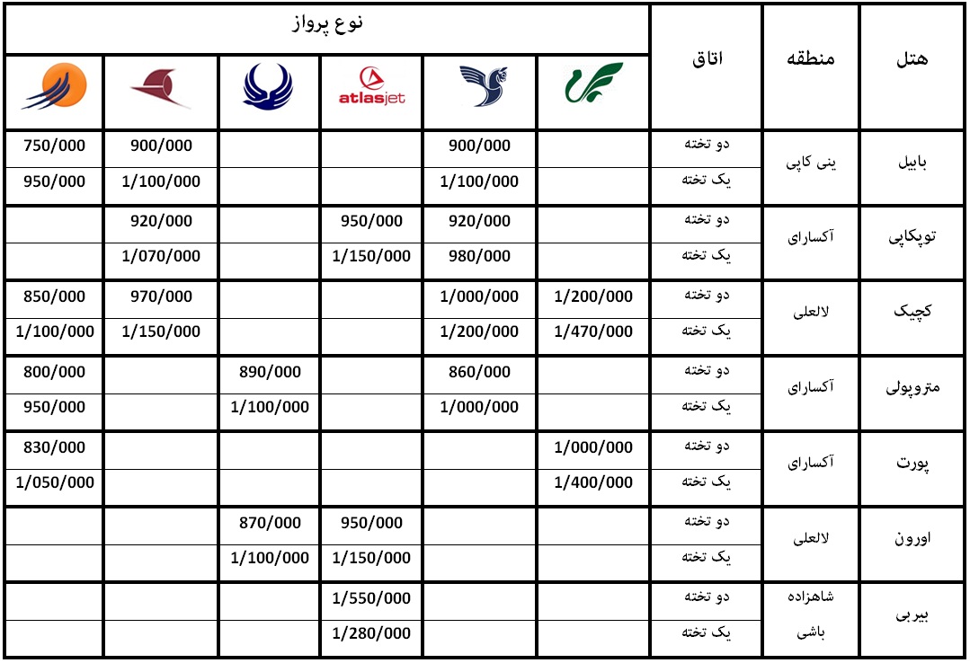 ترکیه آنلاین: در جدول زیر، نرخ تورهای 3 شب و 4 روز برای هتل های سه ستاره استانبول درج شده است.