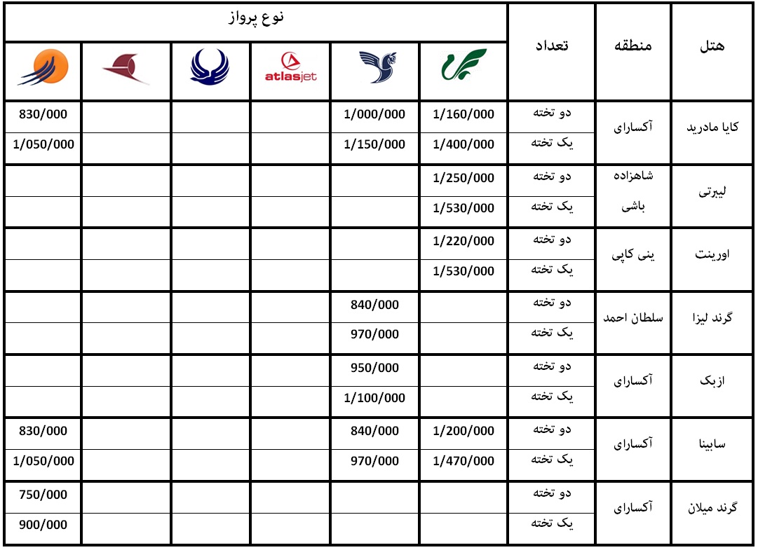 نرخ تورها بر اساس میانگین قیمتهای آژانسهای گردشگری استخراج شده است.