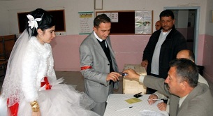 شرکت عروس و داماد جوان در انتخابات ترکیه